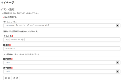 サークル登録が済んでログインしたら、まずはイベント設定を行います。
