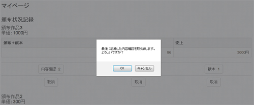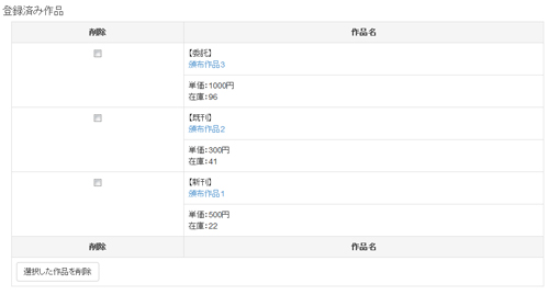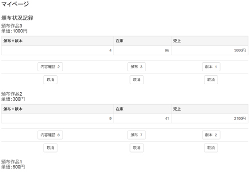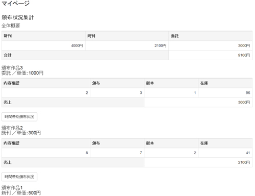 作品毎の売上金額と各種数量(内容確認・頒布・在庫)を確認出来ます。