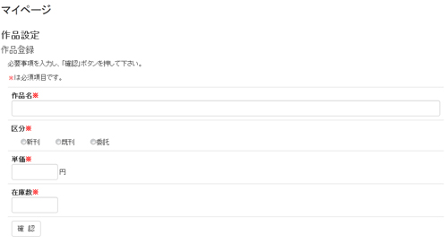 イベント設定が終わったら、次は「作品設定」でスペースに並べる作品を登録していきます。