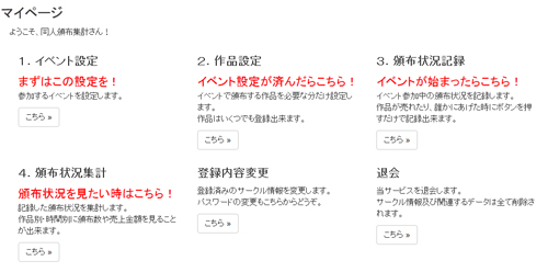 いよいよイベント開幕!開催時間中は、「頒布状況記録」で、売れ行きを記録します。